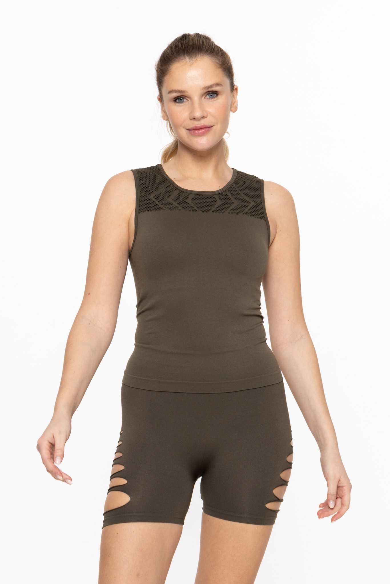 Product name Seamless Laser Cut Longline Tank Top Dark olive