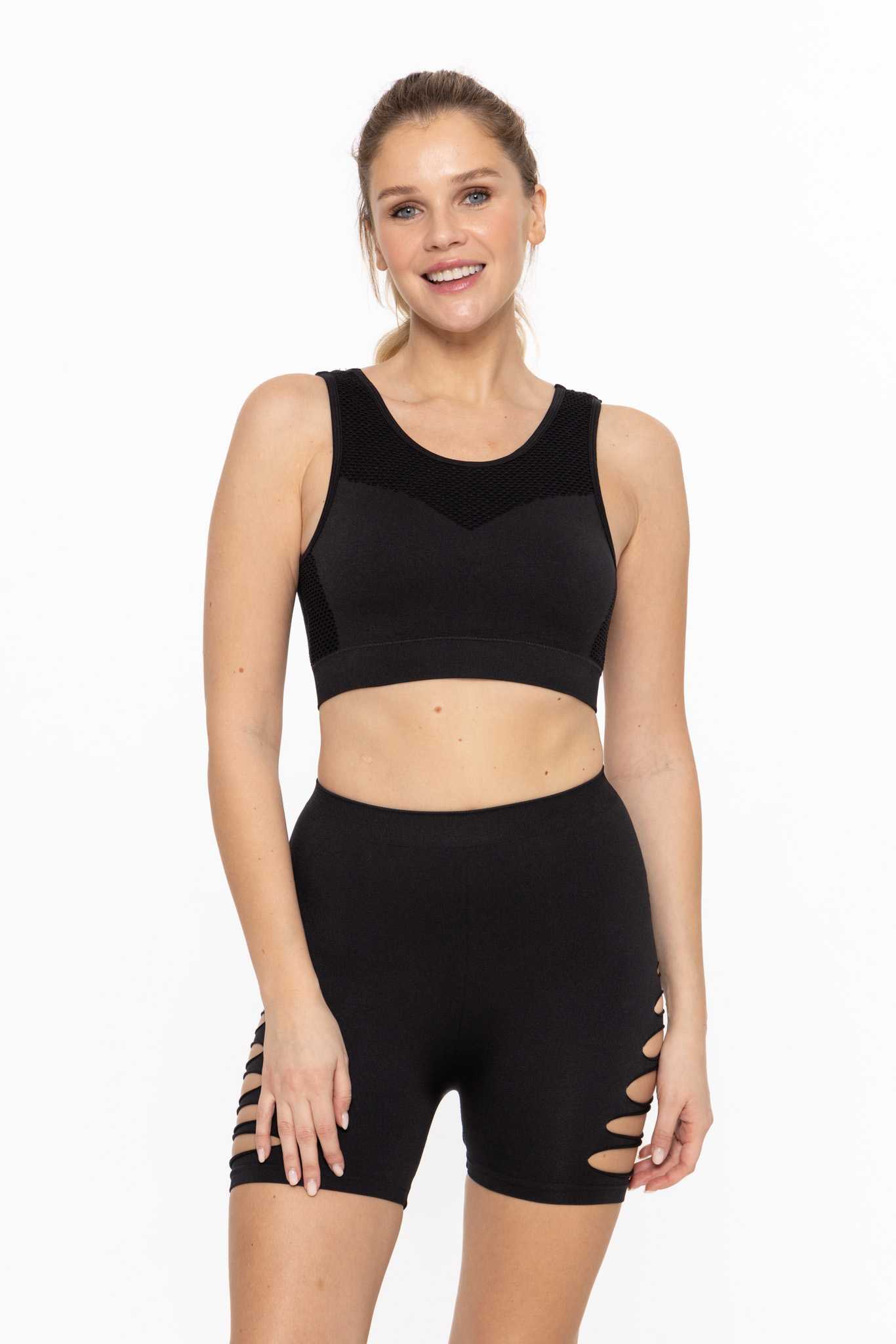 Built with precision and performance in mind, our seamless laser cut sports bra is a sleek addition to you workout wardrobe. It features a keyhole cut out back detail, a built in bra, a flattering sweetheart shape detail, and a ribbed underband for support.